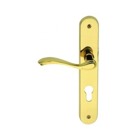 1/2 garniture de porte extérieure ou demi-poignée de porte GAUCHE modèle LAURA en laiton, finition poli, sur plaque fonction Clé I pour cylindre de serrure.