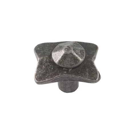 Bouton de porte et de tiroir de meuble modèle FEODALE, en métal finition gris patiné de 31x24mm.