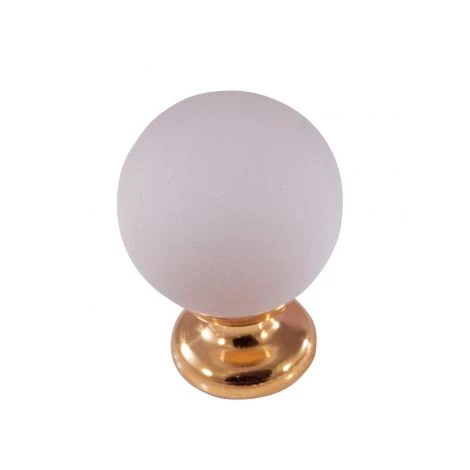 Bouton de porte et tiroir de meuble en verre opaque blanc avec embase en laiton finition poli.