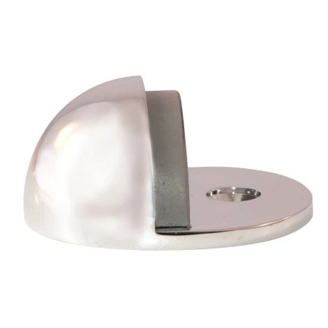 Butée de porte fixation au sol modèle 1/2 LUNE en zamak finition chromé brillant diamètre 46 mm.