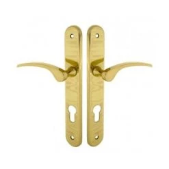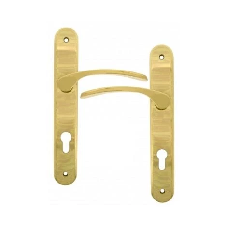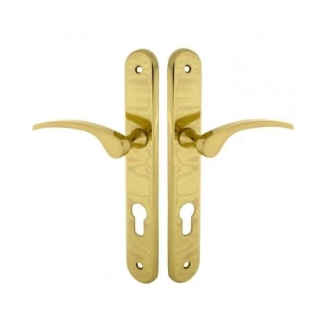 Garniture complète sur plaque – ensemble de 2 poignées de porte intérieure – en laiton finition poli, fonction Cylindre européen pour serrure à barillet, idéal pour les portes extérieures.