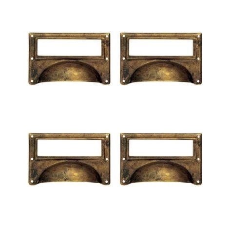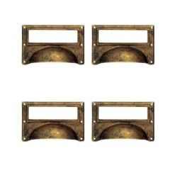 Lot de 4 poignées de porte ou tiroir de meuble modèle COQUILLE en laiton rouillé 80X50 mm, avec porte étiquette.