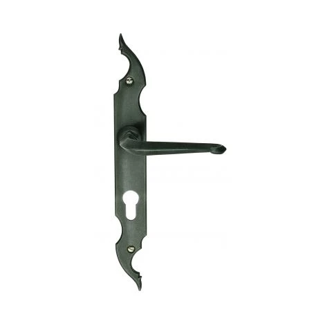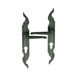 Garniture sur plaque – ensemble de 2 poignĂ©es de porte extĂ©rieure – rustique en style fer forgĂ© finition patinĂ©, fonction ClĂ© I pour cylindre de serrure de porte d’entrĂ©e.Â