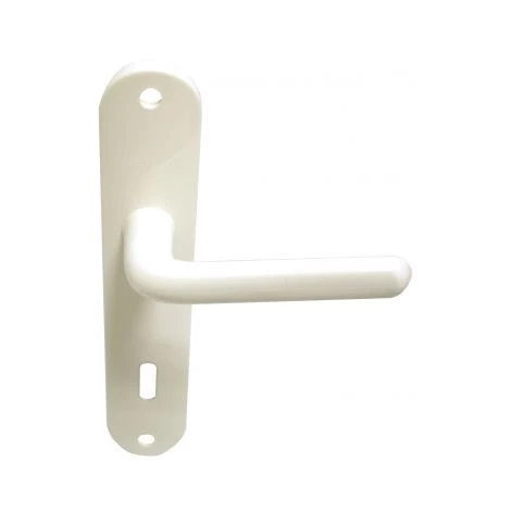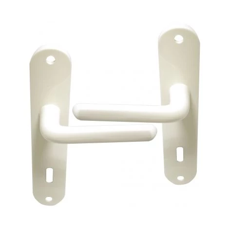 Garniture complète sur plaque – ensemble de 2 Poignées de porte – en plastique finition blanc, fonction clé L de confidentialité pour chambre à coucher.