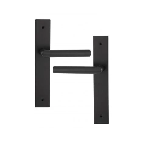 Garniture complète de porte sur plaque – ensemble de 2 poignées de porte intérieure – En métal finition noir, fonction Bec de Cane sans trou de serrure.
