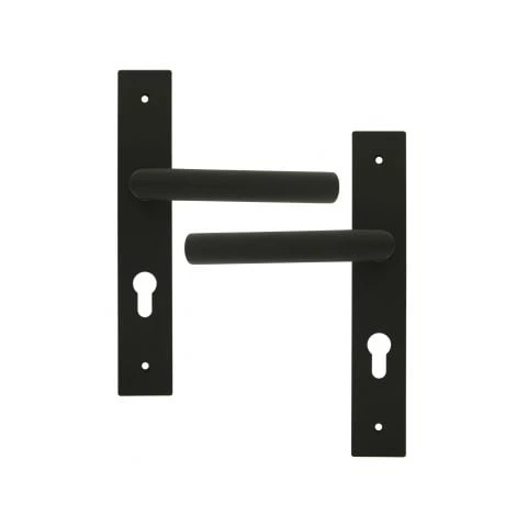 Garniture complète de porte sur plaque – ensemble de 2 poignées de porte intérieure – En métal finition noir, fonction Clé I pour serrure cylindre.