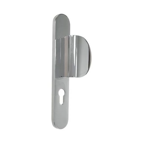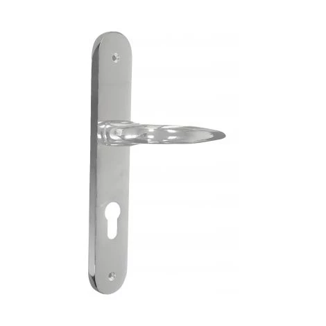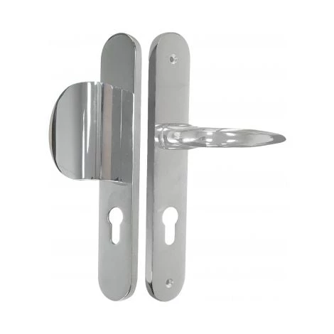 Garniture complète sur plaque – ensemble de 2 poignées de porte extérieure palière – en zamak finition chromé brillant, fonction Clé I pour cylindre de serrure de porte d’entrée.