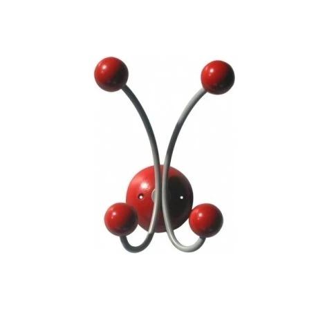 Vestiaire porte-manteau patère mural 4 têtes modèle JUNIOR à fixer par vis, en fer laqué gris et bois laqué rouge idéal pour chambre enfant ou chambre bébé.