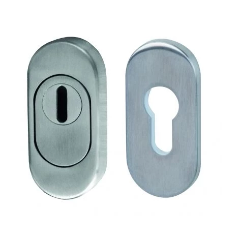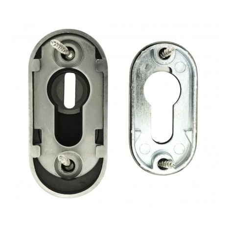 Ensemble de 2 rosaces ovales de protection en Acier inoxydable finition mat pour cylindre de serrure (clé I), spécial anti-effraction.