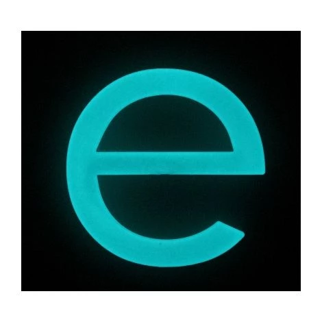 Chiffre en résine auto-adhésive finition luminescent lettre “e”, hauteur 85 mm.
